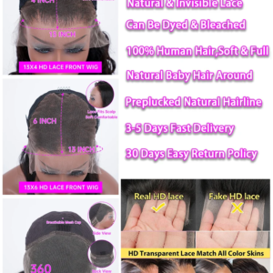 - Lace Wig Type: 13×6 Lace Wig, 13×4 lace wig, Lace Front Wigs, 360 Lace Frontal Wigs, HD Lace Wigs