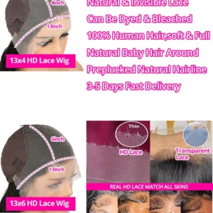 lace size: 13×4 /13×6 HD Lace Frontal Human Hair Wig