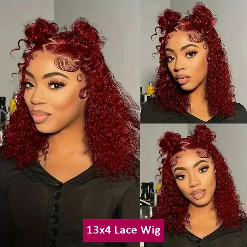 99J Burgundy Lace Front Wigs Human Hair Deep Wave HD Lace Frontal Wigs for Black Women 220% Density Glueless Deep Curly Wig